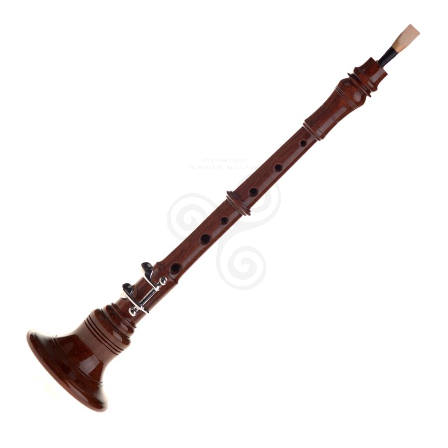 Cette bombarde en bois de rose avec sole et virole en plastique possède 7 trous et une clé (La), pour un poids de 103g et est livré avec une anche et un étui. Elle vous procurera déjà une bonne sonorité pour démarrer en douceur. Attention toutefois, ce modèle entrée de gamme ne convient pas à une utilisation en école, ni à des musiciens aguerris. Il est destiné à des personnes souhaitant faire leurs premiers pas à la bombarde avant de passer à un modèle en ébène, qui leur apportera une meilleure sonorité et justesse. (Tonalité Sib).